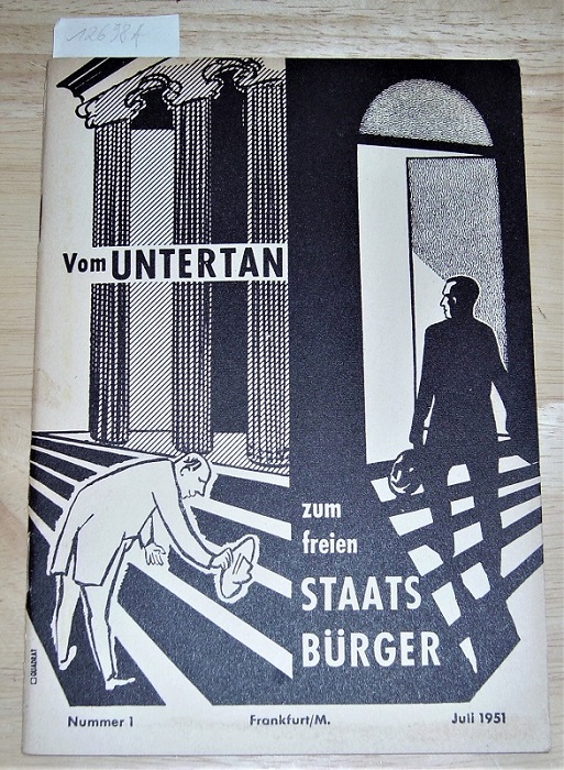 Christ, Rudolf E.: Vom Untertan zum freien Staatsbürger. Frankfurt / M. : Büro für politische Studien 1951 21 cm, 23 S. mit Ill. Geheftet. Umschlag gebräunt u. etw. fleckig, Papier gebräunt. Ecken bestoßen. Sonst gut erhalten. Serie Wissenswertes Nummer 1.