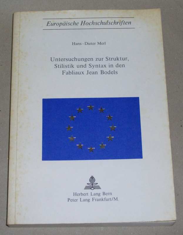 Merl, Hans-Dieter: Untersuchungen zur Struktur, Stilistik und Syntax in den Fabliaux Jean Bodels. Ab Manuskript des Autors gedruckt. Bern: Lang; Frankfurt (M.) : Lang, 1972. ; 21 cm. II, 336 S. Kart. Einband u. Schnitt stockfleckig und gebräunt, Kanten etw. bestoßen. Europäische Hochschulschriften : Reihe 13, Französische Sprache und Literatur ; Bd. 16. Mit Widmung des Autors im Vorsatz, datiert wesel, im August 1972.