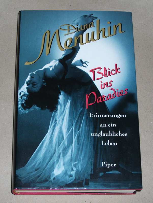 Menuhin, Diana: Blick ins Paradies. Erinnerungen an ein unglaubliches Leben. [1. – 8. Tsd.]. München/Zürich: Piper, 1993. 22 cm. 487, [16] S., Ill. Ln., SU. Leichte Gebrauchsspuren.