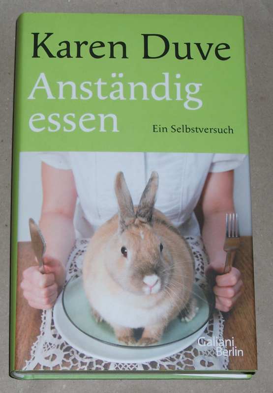 Duve, Karen: Anständig essen. Ein Selbstversuch. 1. Aufl. Berlin: Galiani, 2011. 21 cm. 335 S. Pp., SU. Leichte Gebrauchsspuren.