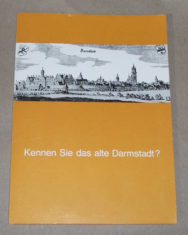 BHF-Bank, Filiale Darmstadt (Hrsg.): Kennen Sie das alte Darmstadt? Sammelmappe mit 12 Faltblättern (komplett). Jeweils 1 Bild mit Erläuterungen und Bankwerbung. Darmstadt: BHF-Bank o.J. 22 cm, Papp-Sammelmappe. Mappenkanten etw. bestoßen, Mappe etw. fleckig / angeschmutzt. Sonst leichte Gebrauchsspuren.