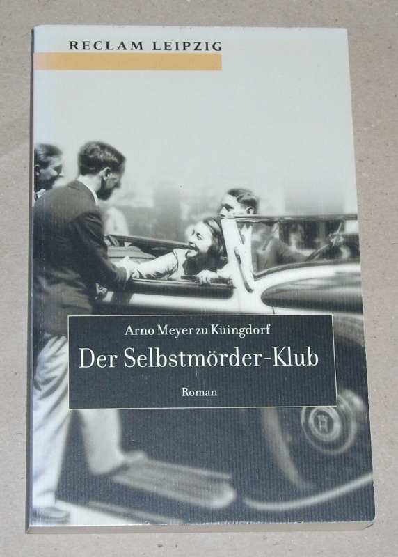 Meyer zu Küingdorf, Arno: Der Selbstmörder-Klub. Roman. Orig.-Ausg., 1. Aufl. Leipzig: Reclam, 1999. 19 cm. 219 S., Ill. TB. Schnitt gebräunt, sonst gut erhalten. Reclam Bibliothek ; Bd. 1673.