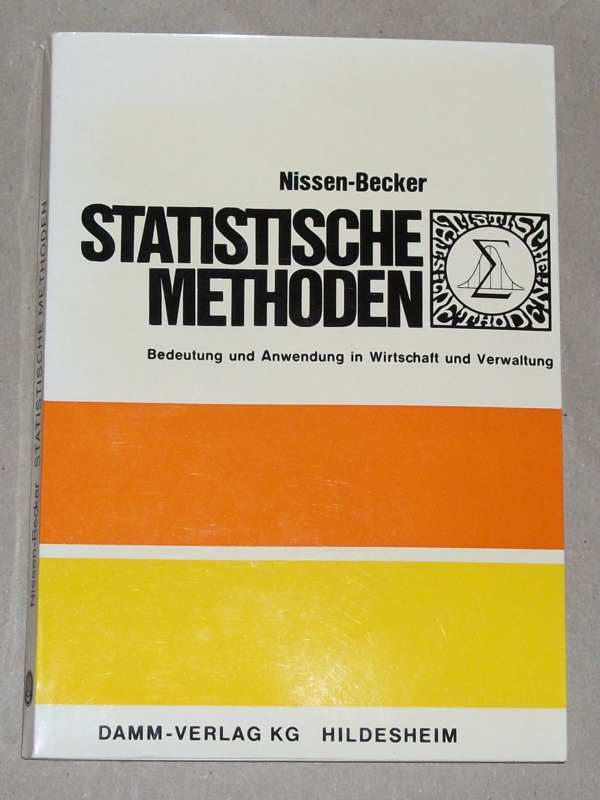 Nissen-Becker, Ursel: Statistische Methoden. Bedeutung u. Anwendung in Wirtschaft u. Verwaltung. Hildesheim: Damm-Verlag, 1974. 21 cm. 191 S., 85 graph. Darst. Engl. Broschur. Schief gelesen, Schnitt gebräunt, Umschlag etw. angeschmutzt, oberes Kapital etw. beschädigt, Stempel a. V. Riecht muffig. Fachbuchreihe für den Post- und Fernmeldedienst ; Bd. 67.