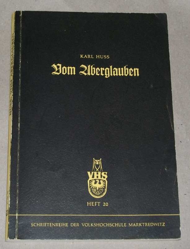 Huss, Karl: Vom Aberglauben. Mit einer Einleitung über Karl Huß von Dr. Hermann Braun. Marktredwitz: Volkshochschule, 1975. 22 cm. 96 S., Ill. Kart. Schief gelesen, Ecken / Kanten bestoßen / berieben. Schriftenreihe der Volkshochschule der Stadt Marktredwitz ; H. 20. Aus: Der Egerländer. Jg. 25. 1974.