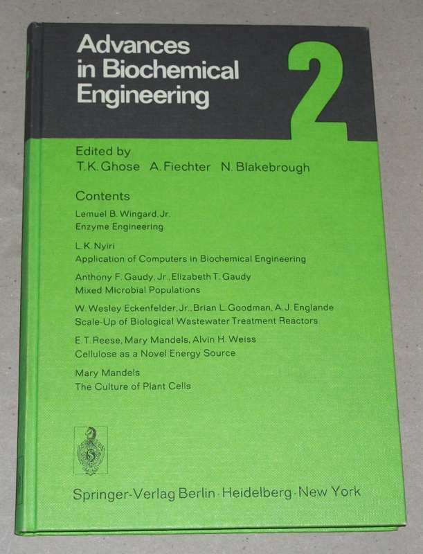 Ghose, T. K. / A. Fiechter / N. Blakebrough (Hrsg.): Advances in biochemical engineering 2. Berlin, Heidelberg, New York: Springer, (1972). 23,5 cm, 215 S., Ill., graph. Darst. Pp. Leichte Gebrauchsspuren.