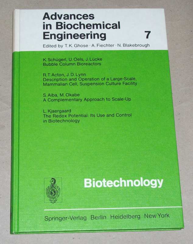 Ghose, T. K. / A. Fiechter / N. Blakebrough (Hrsg.): Advances in biochemical engineering 7. Berlin [West]: Springer, 1977. 25 cm, 150 S., 112 Ill. Pp. Leichte Gebrauchsspuren.