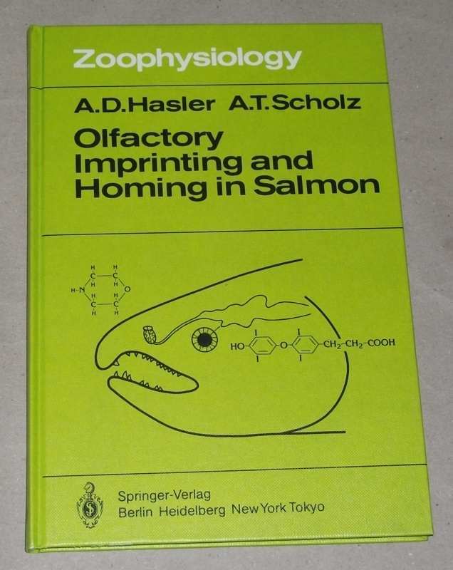 Hasler, Arthur D.; Scholz, Allan T.: Olfactory imprinting and homing in salmon. Investigations into the mechanism of the imprinting process. Berlin/Heidelberg/New York/Tokyo: Springer, 1983. 25 cm. XIX, 134 S., 25 Ill. u. graph. Darst. Pp. Leichte Gebrauchsspuren. Zoophysiology ; Vol. 14. Literaturverz. S. 114 – 130