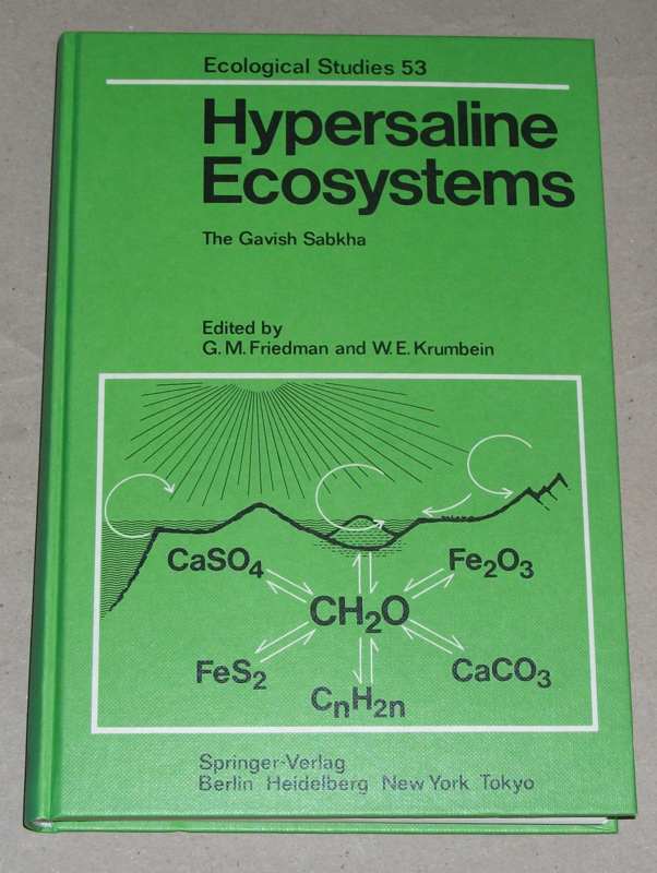 Friedman, Gerald M. [Hrsg.]: Hypersaline ecosystems. The Gavish sabkha. Berlin/Heidelberg/New York/Tokyo: Springer, 1985. 25 cm. X, 484 S., 246 Ill., graph. Darst. u. Kt. Pp. Leichte Gebrauchsspuren. Ecological studies ; Vol. 53. Literaturverz. S. 440 – 470