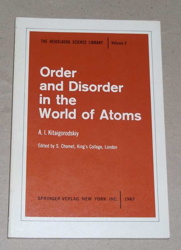 Kitajgorodskij, Aeksandr Isaakovc: Order and disorder in the world of atoms. New York, NY: Springer, 1967. 23 cm, VIII, 135 S Ill., graph. Darst. Kart. Einband mit leichter Knickspur, sonst leichte Gebrauchsspuren. Heidelberg science library, 3.