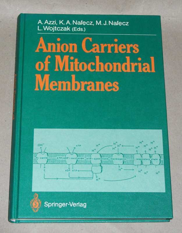 Azzi, Angelo [Hrsg.]: Anion carriers of mitochondrial membranes. Berlin/Heidelberg/New York/London/Paris/Tokyo: Springer, 1989. 25 cm. X, 381 S., 147 Ill. u. graph. Darst. Pp. Leichte Gebrauchsspuren. Literaturangaben