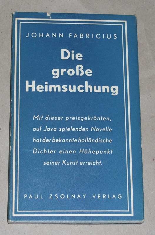 Fabricius, Johan; Stöphl, Norbert (Übers.): Die grosse Heimsuchung. [Novelle]. Wien: Zsolnay, 1951. 19 cm, 114 S. Ln., SU. SU. mit kl. Randeinriß u. etw. berieben. Widmung a. V., Schnitt gebräunt. Sonst gut erhalten.