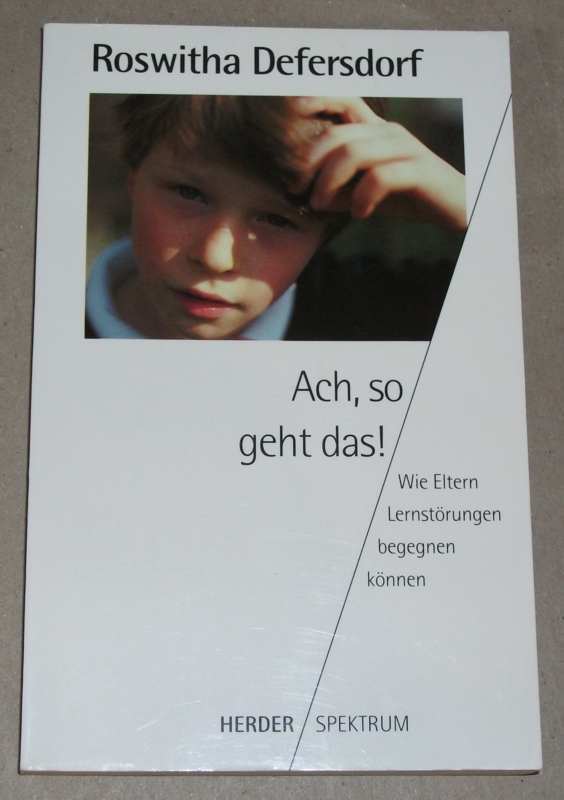 Scheurl-Defersdorf, Mechthild Roswitha von: Ach, so geht das! Wie Eltern Lernstörungen begegnen können. Orig.-Ausg., 2. Aufl. Freiburg im Breisgau/Basel/Wien: Herder, 1994. 19 cm. 189 S. TB. Einbandecke mit Knickspur, Schnitt gebräunt, Reste von Adressaufkleber im Vorsatz. Sonst gut erhalten. Herder-Spektrum ; Bd. 4243.