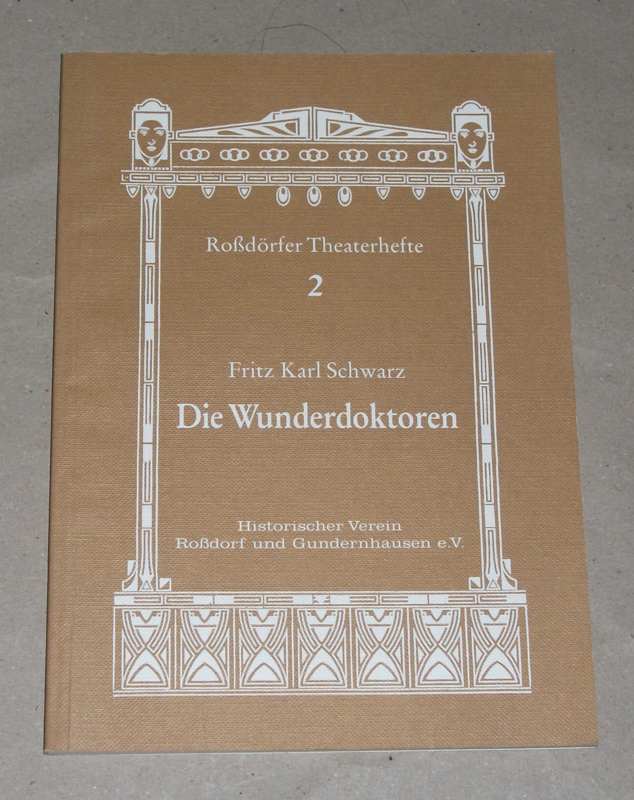 Schwarz, Fritz Karl: Die Wunderdoktoren. Roßdorf: Historischer Verein Roßdorf und Gundernhausen, 1992. 21 cm. 76 S. Kart. Leichte Gebrauchsspuren. Roßdörfer Theaterhefte ; 2. Mit handschriftlicher Widmung des Autors auf dem Titelblatt, signiert.