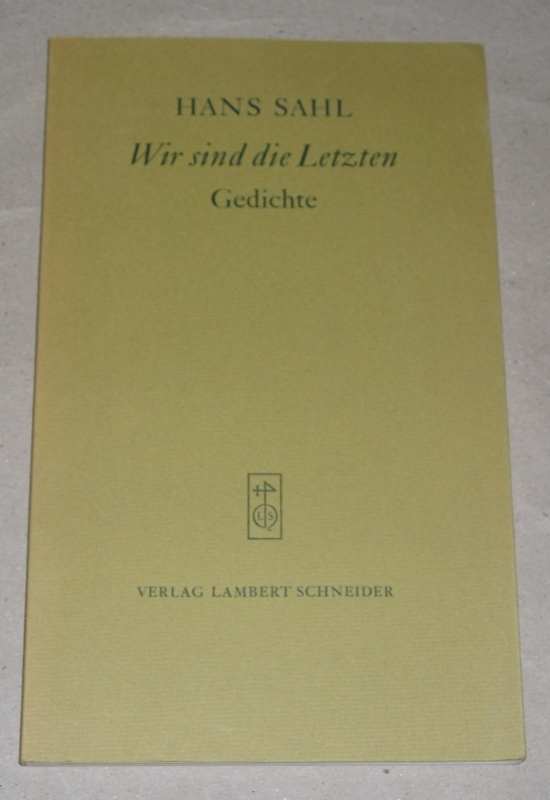 Sahl, Hans: Wir sind die Letzten. Gedichte. Heidelberg: Schneider, 1976. 24 cm. 87 S. Engl. brosch. Leichte Gebrauchsspuren. Veröffentlichungen der Deutschen Akademie für Sprache und Dichtung, Darmstadt ; 50. Bibliogr. S. 85 – 87