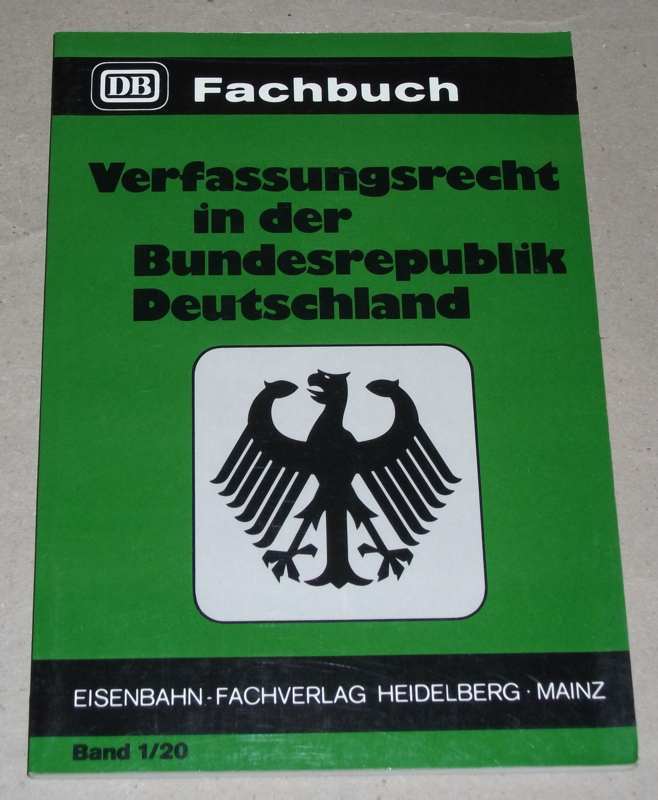 Müller, Christoph Michael: Verfassungsrecht in der Bundesrepublik Deutschland. Heidelberg/Mainz: Eisenbahn-Fachverl, 1982. 21 cm. 154 S. Kart. Ecken etw. bestoßen, Stempel a. V. Sonst gut erhalten. DB-Fachbuch / hrsg. vom Bundesbahn-Sozialamt ; Bd. 1,20.