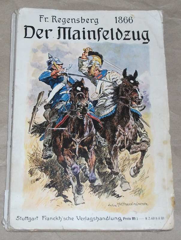 Regensberg, Friedrich: Der Mainfeldzug. Mit Illustrationen von Anton Hoffmann und 2 Karten. Stuttgart: Franckh, o.J. 20,5 cm, 158 S. 2 Kt., altdeutsche Schrift. Broschur. Umschlag mit deutlichen Gebrauchsspuren (geknickt, fleckig, bestoßen). Schnitt unbeschnitten, gebräunt u. stockfleckig. Im Vorsatz fleckig, sonst innen sauber und ordentlich.