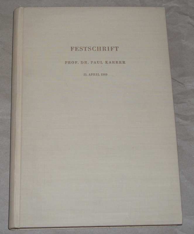 Festschrift zu Ehren von Prof. Dr. Paul Karrer anläßlich seines 60. Geburtstages 21. April 1949. Hrsg. von Freunden und Kollegen. 24,5 cm, Ln. Einbandecken etw. bestoßen, Einbandinnenkanten etw. stockfleckig. Sonst gut erhalten.