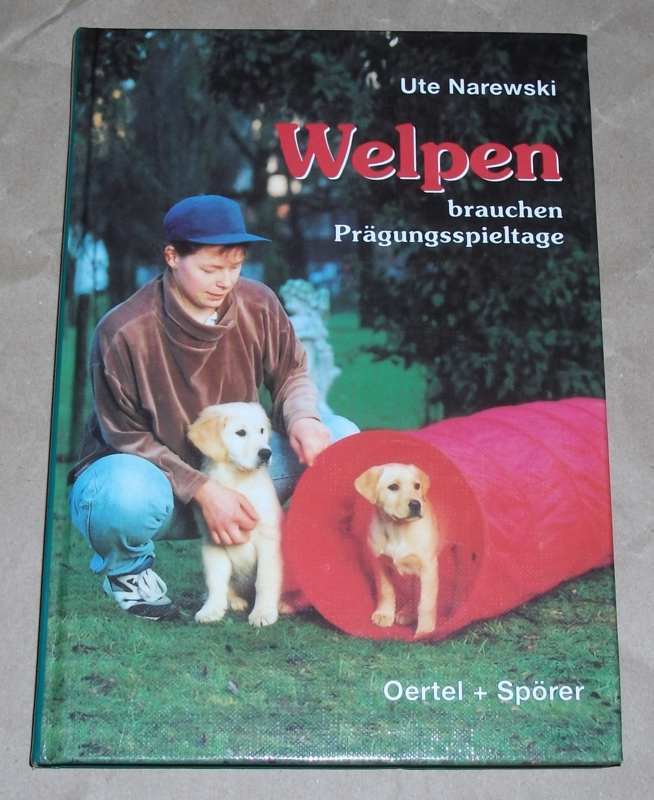 Narewski, Ute: Welpen brauchen Prägungsspieltage als Geschwisterersatz und zur behutsamen Frühsterziehung. 2., vollst. überarb. und erg. Aufl. Reutlingen: Verl.-Haus Reutlingen Oertel und Spörer, 1998. 21,5 cm, 179 S. zahlr. Ill. Ppd. Leichte Gebrauchsspuren.