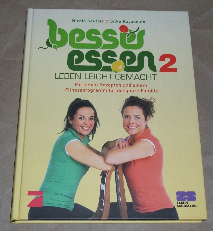 Sautter, Nicola u. Silke Kayadelen: Besser essen 2. Leben leicht gemacht. Mit neuen Rezepten und einem Fitnessprogramm für die ganze Familie. 1. Aufl. München: Zabert Sandmann, 2008. 26 cm, 183 S., zahlr. Ill. Pp. Etwas schief gelesen, sonst gut erhalten.