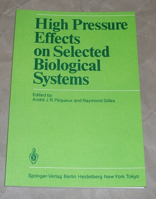 Péqueux, André [Hrsg.]: High pressure effects on selected biological systems. Berlin/Heidelberg/New York/Tokyo: Springer, 1985. 25 cm. XIV, 145 S., graph. Darst. Kart. Leichte Gebrauchsspuren. Literaturangaben