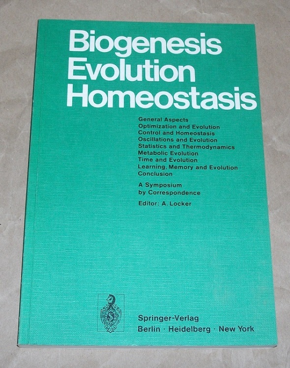 Locker, Alfred [Hrsg.]: Biogenesis, evolution, homeostasis. A symposium by correspondence. Berlin, Heidelberg, New York: Springer, 1973. 25 cm. 190 S., 13 graph. Darst. Kart. Schnitt etw. angeschmutzt, am Rücken unten etw. berieben. Sonst leichte Gebrauchsspuren. Literaturangaben.