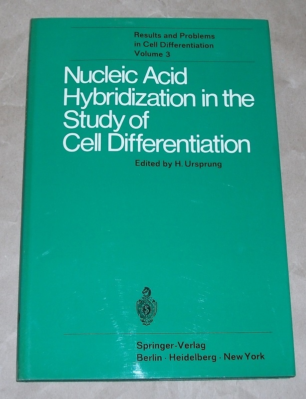 Ursprung, Heinrich [Hrsg.]: Nucleid acid hybridization in the study of cell differentiation. Berlin, Heidelberg, New York: Springer, 1972. 26 cm. 76 S., 29 Ill. u. graph. Darst. Ln., SU. SU. mit leichten Randläsuren (Folienkaschierung fängt an sich zu lösen). Oberer Schnitt fleckig. Sonst leichte Gebrauchsspuren. Results and problems in cell differentiation ; 3. Literaturangaben.