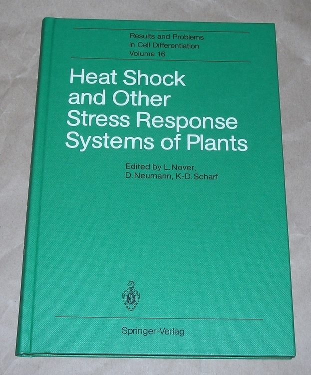 Nover, Lutz [Hrsg.]; Neumann, Dieter: Heat shock and other stress response systems of plants. Berlin/Heidelberg/New York/London/Paris/Tokyo: Springer, 1989. 25 cm. 155 S., Ill., graph. Darst. Pp. Leichte Gebrauchsspuren. Results and problems in cell differentiation ; 16. Literaturverz. S. 112 – 146