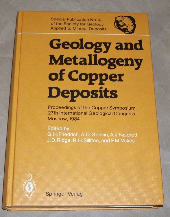Friedrich, Günther H. [Hrsg.]: Geology and metallogeny of copper deposits. proceedings of the Copper Symposium, 27th Internat. Geologic. Congress, Moscow, 1984. Berlin/Heidelberg/New York/London/Paris/Tokyo: Springer, 1986. 25 cm. XI, 592 S., 258 Ill., graph. Darst. u. Kt. Pp. Leichte Gebrauchsspuren. Special publication of the Society for Geology Applied to Mineral Deposits ; No. 4. Literaturangaben