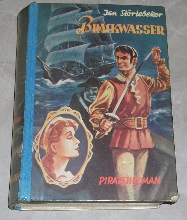 Störtebeker, Jan: Brackwasser. Piratenroman. 1. Aufl. Balve/Westf: Hönne-Verl., 1954. 8. 272 S. Hln. mit Folienkaschierung. Mit Gebrauchsspuren. Schief gelesen, Einbandecken bestoßen, Einband fleckig, Papier gebräunt. Vorderer Einband u. erste Seiten mit Spuren von 2 entfernten Tackernadeln. Zahlen auf letzter leerer Seite.