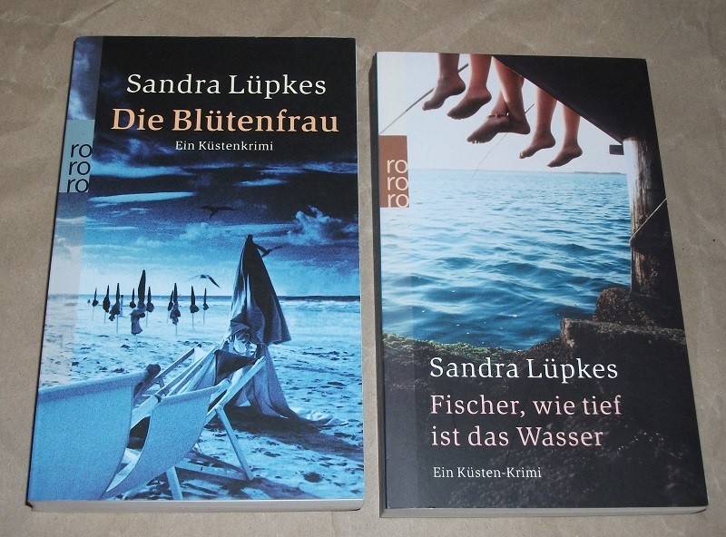 Lüpkes, Sandra: Die Blütenfrau / Fischer, wie tief ist das Wasser. Ein Küstenkrimi. Orig.-Ausg. 2 Bände. Reinbek bei Hamburg: Rowohlt-Taschenbuch-Verl., 2008. 19 cm. 318 / 250 S. TBs. 1x Rücken rund vom lesen, Schnitt gebräunt. Sonst gut erhalten. Rororo ; 24618 + 23416.