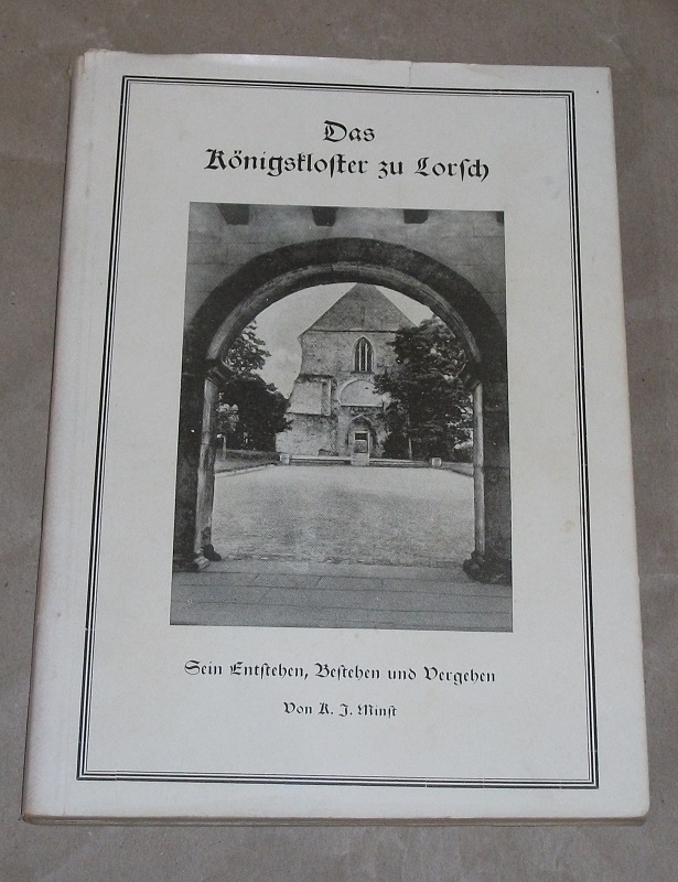 Minst, Karl Josef: Das Königskloster zu Lorsch. Sein Entstehen, Bestehen und Vergehen. Mannheim: Geppert, 1949. 21 cm. 135 S., Ill., altdeutsche Schrift. Kart. Umschlag mit Randläsuren, gebräunt u. etw. angeschmutzt. Schnitt gebräunt. Name u. Notiz a. Titel. Literaturangaben. – In Fraktur