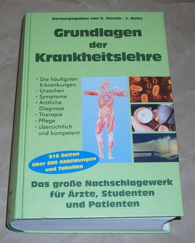 Münch, Gerhard [Hrsg.]: Grundlagen der Krankheitslehre. Das große Nachschlagewerk für Ärzte und Patienten. Sonderausg. Hamburg: Nikol, (1996) 23 cm. XI, 916 S., Ill., graph. Darst. Pp. Leichte Gebrauchsspuren. Lizenz des Verl. de Gruyter, Berlin
