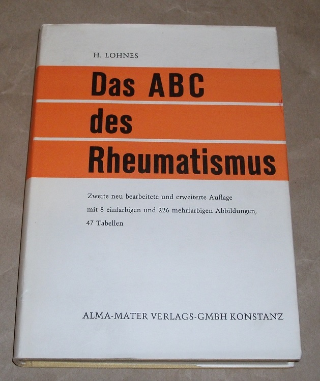 Lohnes, Hermann: Das ABC des Rheumatismus. 2., neu bearb. u. erw. Aufl. Konstanz: Alma-Mater-Verlagsges, 1967. gr. 8. 411 S., Mit 8 einfarb. u. 226 mehrfarb. Abb., 47 Tab. Ln., SU. SU. mit Randläsuren u. etw. angeschmutzt / gebräunt. Schnitt etw. gebräunt. Gut erhalten.