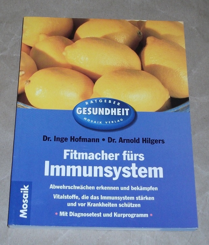 Hofmann, Inge; Hilgers, Arnold: Fitmacher fürs Immunsystem. Abwehrschwächen erkennen und bekämpfen ; Vitalstoffe, die das Immunsystem stärken und vor Krankheiten schützen. München, Mosaik-Verl., 1996. 21 cm. 159 S. Kart. Leichte Gebrauchsspuren. Ratgeber Gesundheit.