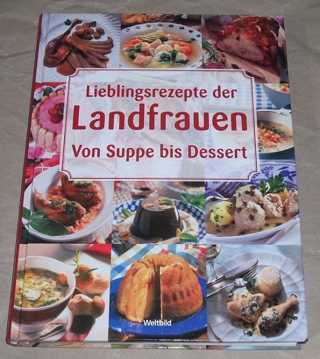 Pressler, Heike [Red.]: Lieblingsrezepte der Landfrauen. von Suppe bis Dessert. Orig.-Ausg. Augsburg: Weltbild, 2008. 29 cm. 352 S., zahlr. Ill. Pp. Einbandkante etw. bestoßen / gering beschädigt. Sonst leichte Gebrauchsspuren.