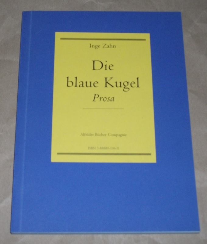 Zahn, Inge: Die blaue Kugel. Prosa. 1. Aufl. Alfeld: Alfelder Bücher-Compagnie, 1997. 25 cm. 139 S. Kart. Leichte Gebrauchsspuren. Mit Widmung der Autorin im Vorsatz. Signiert. Exemplar Nr. 93 / 200.