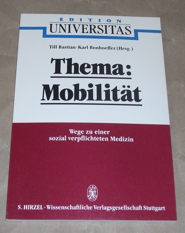 Bastian, Till [Hrsg.]: Thema: Mobilität. Stuttgart: Hirzel; Stuttgart : Wiss. Verl.-Ges., 1990. 23 cm. 103 S., Ill., graph. Darst., Kt. Kart. Leichte Gebrauchsspuren. Edition Universitas Wege zu einer sozial verpflichteten Medizin : Reihe Medizin und Ökologie.