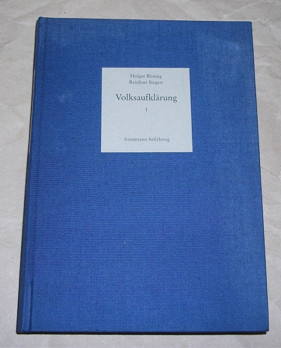 Böning, Holger / Reinhart Siegert: Die Genese der Volksaufklärung und ihre Entwicklung bis 1780. Volksaufklärung Band I. Biobibliographisches handbuch zur Popularisierung aufklärerischen Denkens im deutschen Sprachraum von den Anfängen bis 1850. Stuttgart- Bad Cannstatt: Frommann-Holzboog, 1990. 24 cm, LIV S., 932 Sp. Ill. Ln. Einband fleckig, sonst leichte Gebrauchsspuren.
