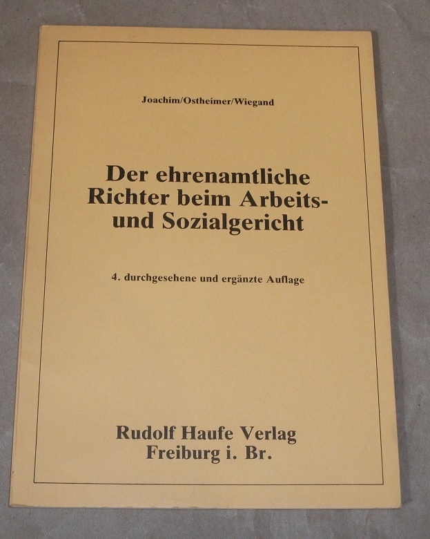 Joachim, Hans G.; Ostheimer, Lothar; Wiegand, Dietrich: Der ehrenamtliche Richter beim Arbeits- und Sozialgericht. Rechte u. Pflichten von d. Berufung bis zur Beendigung d. Ehrenamtes. 4., durchges. u. erg. Aufl. Freiburg i. Br.: Haufe, 1980. 21 cm. 76 S. Kart. 1 Anstreichung am Seitenrand, sonst leichte Gebrauchsspuren.