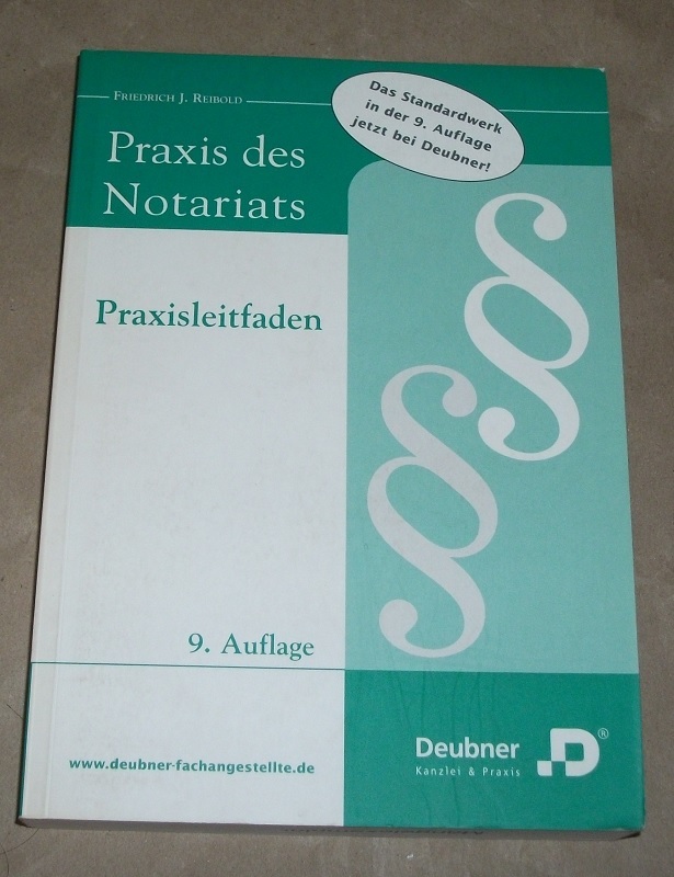 Reibold, Friedrich J.: Praxis des Notariats. Praxisleitfaden. 9. Aufl. Köln: Deubner, 2007. 21 cm. XX, 521 S. Kart. Als Mängelexemplar gekennzeichnet. Leichte Gebrauchsspuren.