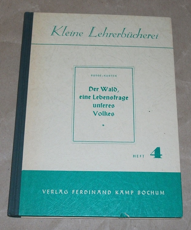 Budde, Hermann; Kürten, Michael: Der Wald, eine Lebensfrage unseres Volkes. Eine Gesamtschau auf der Oberstufe. 2. Aufl. Bochum: Kamp, 1950. 8. 90 S. Hln. Einband an der unteren Kante etw. beschädigt. Einband u. Schnitt gebräunt. Sonst gut erhalten. Kleine Lehrerbücherei ; H. 4.