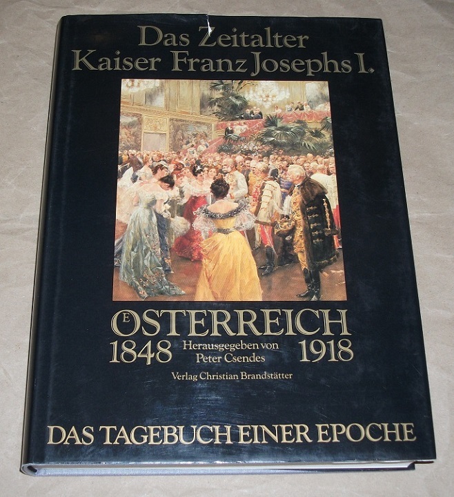 Csendes, Peter [Hrsg.]: Das Zeitalter Kaiser Franz Josephs I. Österreich 1848 – 1918 ; [das Tagebuch einer Epoche]. 1. Aufl. Wien: Brandstätter, c 1989. 30 cm. 319 S., Ill., Kt. Ln., SU. SU. mit Randeinriß u. berieben. Das Buch leichte Gebrauchsspuren.