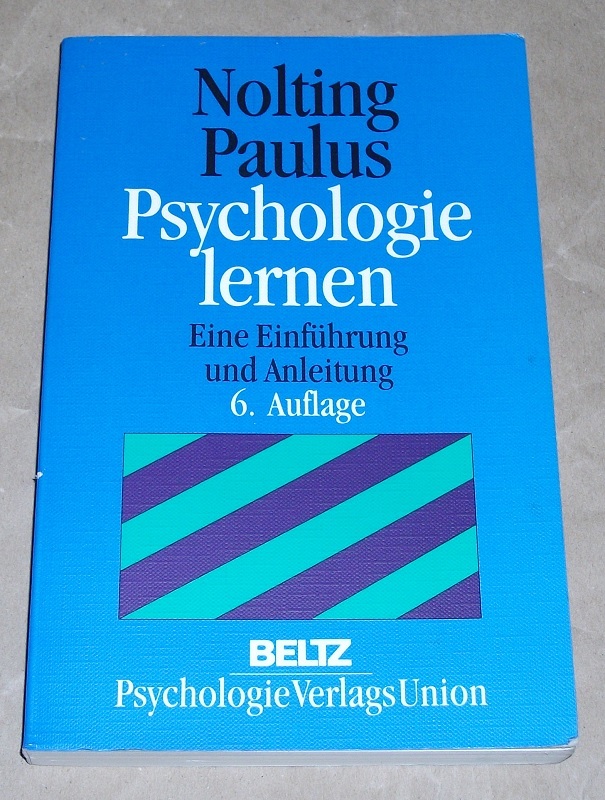 Nolting, Hans-Peter; Paulus, Peter: Psychologie lernen. Eine Einführung und Anleitung. 6. Aufl. Weinheim: Beltz, Psychologie-Verl.-Union, 1996. 21 cm. 236 S., Ill., graph. Darst. Kart. Ecken etw. bestoßen. Leichte Gebrauchsspuren. Literaturangaben