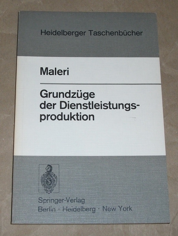 Maleri, Rudolf: Grundzüge der Dienstleistungsproduktion. Berlin, Heidelberg, New York: Springer, 1973. 21 cm. XI, 162 S. TB. Leichte Gebrauchsspuren. Schnitt gebräunt. Heidelberger Taschenbücher Bd. 123. Literaturverz. S. 140 – 157.