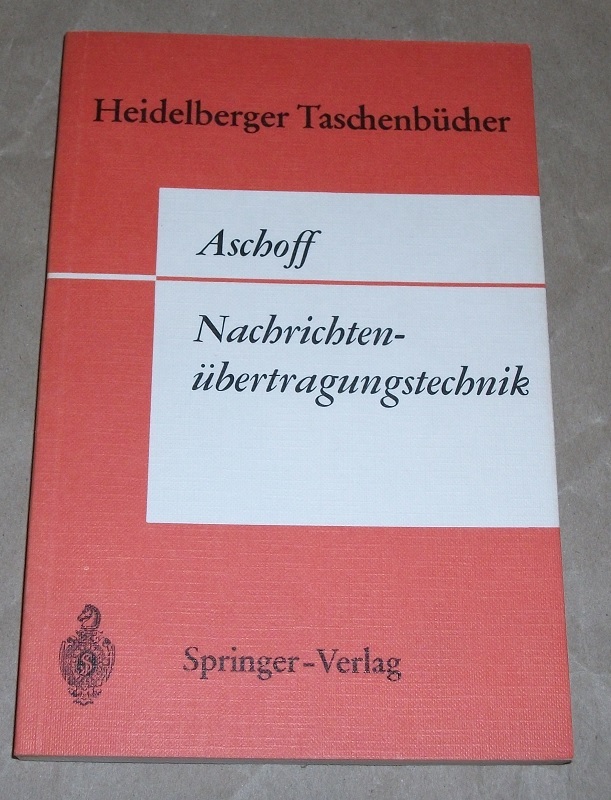 Aschoff, Volker: Einführung in die Nachrichtenübertragungstechnik. Berlin/Heidelberg/New York: Springer, 1968. 8. VIII, 147 S., Mit 121 Abb. TB. Leichte Gebrauchsspuren. Schnitt gebräunt. Riecht etw. muffig. Heidelberger Taschenbücher ; Bd. 37.