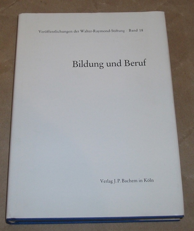 Bildung und Beruf. [1. – 6. Tsd.]. Köln: Bachem, 1979. 22 cm. 282 S. Ln., SU. Leichte Gebrauchsspuren. Kolloquium / Walter-Raymond-Stiftung ; 17. 1979 Veröffentlichungen der Walter-Raymond-Stiftung der BDA ; Bd. 18. Literaturverz. S. 270 – 276.