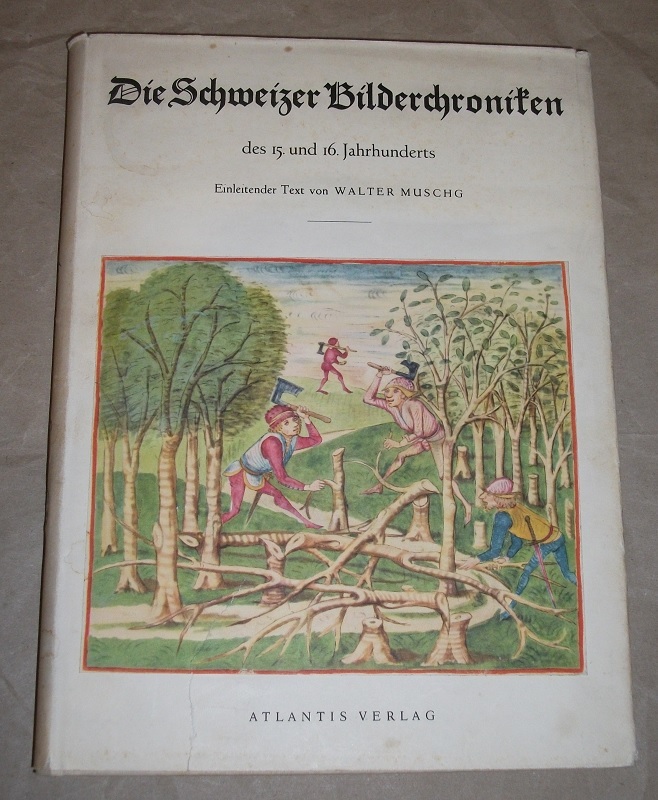 Muschg, Walter; Gessler, Eduard A: Die Schweizer Bilderchroniken des 15./16. Jahrhunderts. Zürich: Atlantis Verl., 1942. 4. 195 S., zahlr. Bl. Abb. Ln., SU. SU. fleckig, gebräunt u. eingerissen. Das Buch Schnitt gebräunt u. etw. fleckig / angeschmutzt. Sonst leichte Gebrauchsspuren.