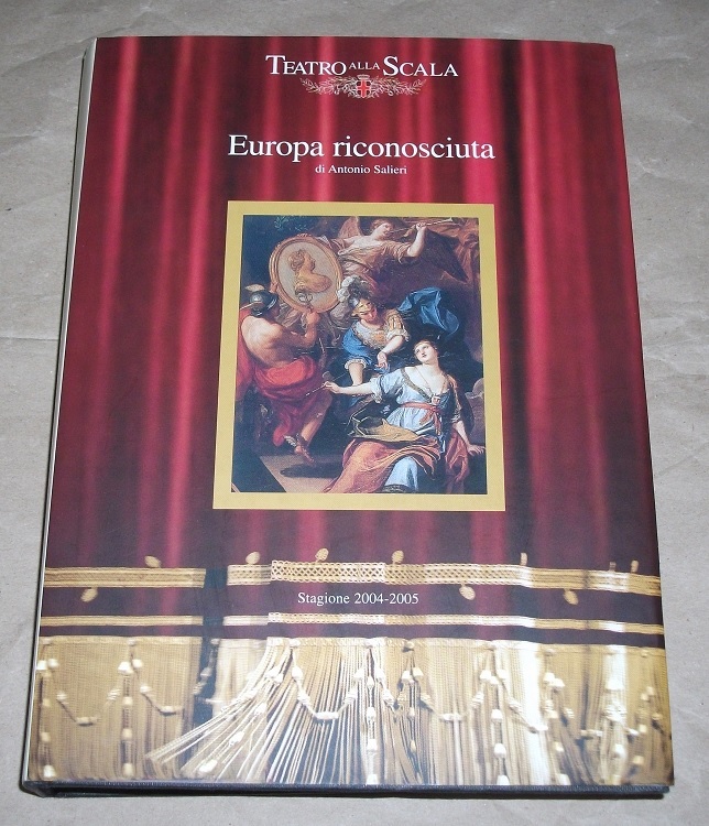 Salieri, Antonio: Europa riconosciuta. Dramma per musica in due atti. Libretto di Mattia Verazi. Musica di Antonio Salieri. Teatro alla Scala 2004. 24,5 cm, 265 S. mit Abb. + Werbungsteil. Ppd., SU. Block schief, sonst leichte Gebrauchsspuren.