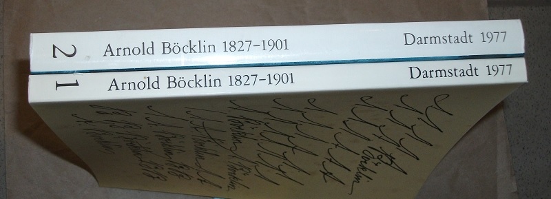 Krimmel, Bernd (Hrsg.): Arnold Böcklin. 1827 – 1901 ; Ausstellung zum 150. Geburtstag veranstaltet vom Magistrat der Stadt Darmstadt ; Darmstadt, Mathildenhöhe 23. Okt. – 11. Dez. 1977. Band 1 + 2. 2 Bände. Darmstadt: 1977. 22 cm, 179 / 274 S. mit Abb. Kart. Band 1 am Rücken gering beschädigt. Kapitale etw. bestoßen. Sonst leichte Gebrauchsspuren.