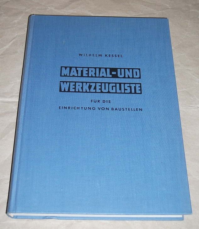 Kessel, Wilhelm: Material- und Werkzeugliste für die Einrichtung von Baustellen. unveränderter Nachdruck d. 2. Aufl. Wiesbaden/Berlin: Bauverl, 1967. 4. XII, 336 S. Ln. Einband mit Druckstellen, Kapital bestoßen. Schnitt gebräunt u. fleckig. Sonst gut erhalten.